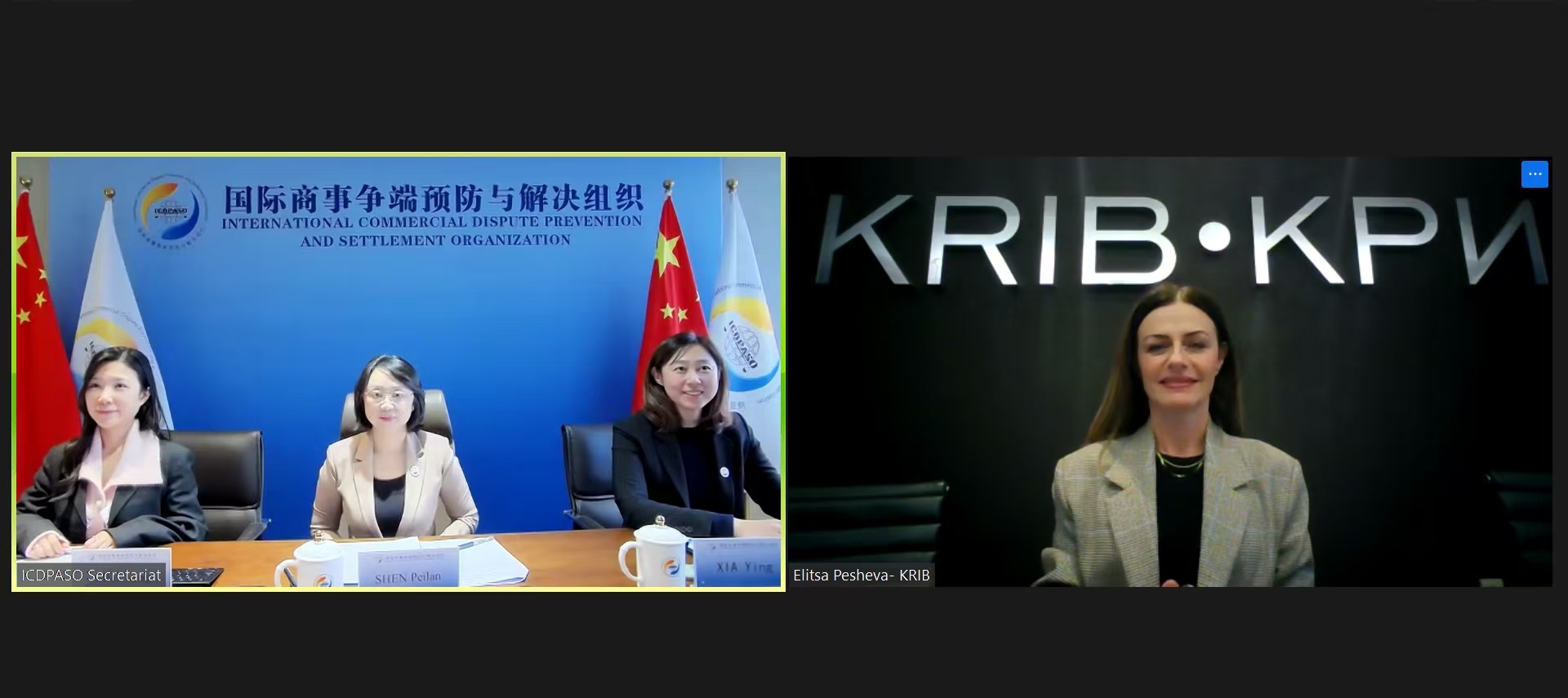 2024年12月5日,国际商事争端预防与解决组织(以下简称“争端解决组织”)秘书长沈佩兰女士与保加利亚雇主协会(KRIB,ICDPASO监督委员会成员)项目总监埃莉萨·佩舍娃女士进行线上视频会议。