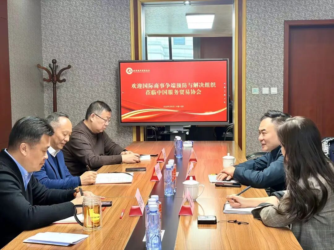 2026年2月5日,国际商事争端预防与解决组织(ICDPASO)秘书长贾珅一行拜会中国服务贸易协会,并与中国服务贸易协会书记兼秘书长仲泽宇、秘书长助理兼会员会展部部长杨小刚等进行了座谈交流。
