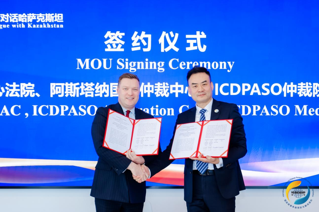 成果发布环节,ICDPASO仲裁院、ICDPASO调解署与阿斯塔纳国际金融中心法院(AIFC Court)及阿斯塔纳国际仲裁中心(IAC)共同签署合作备忘录,围绕信息共享、活动共办、推动商事法律服务领域合作与交流等方面建立长效合作机制,进一步畅通跨境争议解决渠道。